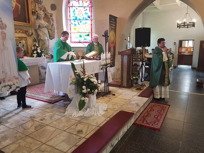 Dnia 9 lipca podczas Mszy świętej o godz 13.00 w kościele w Brojcach dziękowaliśmy za posługę w naszej parafii ks. Piotrowi, który decyzją przełożonych naszego zgromadzenia zakonnego został skierowany do pracy wśród Polonii w Stanach Zjednoczonych. Jednocześnie witaliśmy nowego wikarego: ks. Macieja Onaszkiewicza TChr, wyświęconego w tym roku, życząc Mu błogosławionej pracy duszpasterskiej. Podczas Mszy świętej i po jej zakończeniu, uczestnicy liturgii zostali zaproszeni do wysłuchania koncertu w wykonaniu specjalnego gościa ze Stanów Zjednoczonych, ks. Mirosława Frankowskiego TChr - który jest Proboszczem polsko-amerykańskiej parafii św. Floriana w Hamtramck (Detroit). Treść piosenek była bardzo wzruszająca, co było widać na twarzach słuchających. Dziękujemy za to spotkanie.