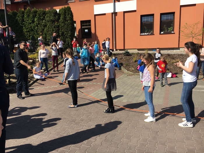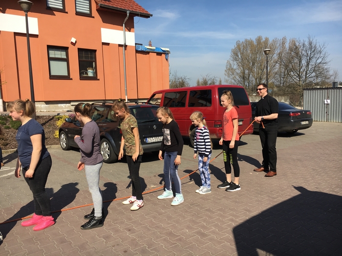 Gospodarze ugościli nas ciepłym posiłkiem (kiełbaska z grila). Nie zabrakło także miejsca i czasu na rywalizację międzyparafialną. Tym razem trzeba było przeskoczyć jak najwięcej razy - grupowo - przez skakankę. Zwyciężyła nasza parafia BRAWO!!!