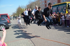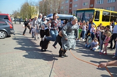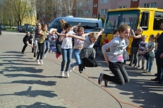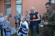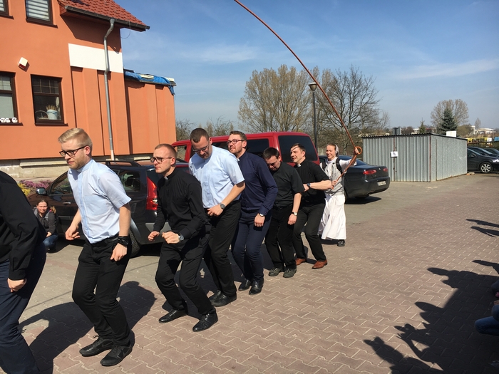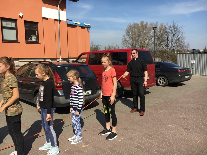 Gospodarze ugościli nas ciepłym posiłkiem (kiełbaska z grila). Nie zabrakło także miejsca i czasu na rywalizację międzyparafialną. Tym razem trzeba było przeskoczyć jak najwięcej razy - grupowo - przez skakankę. Zwyciężyła nasza parafia BRAWO!!!